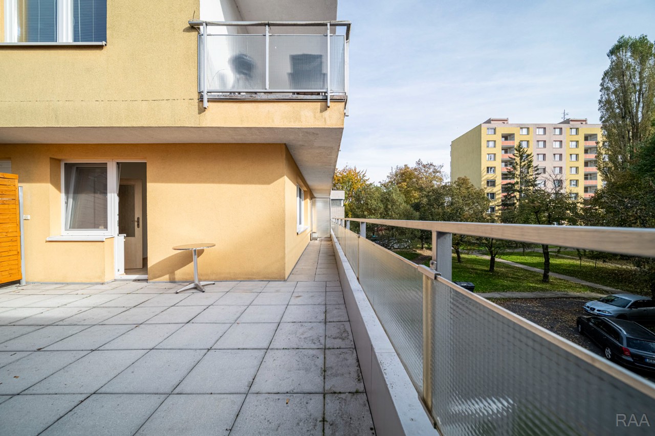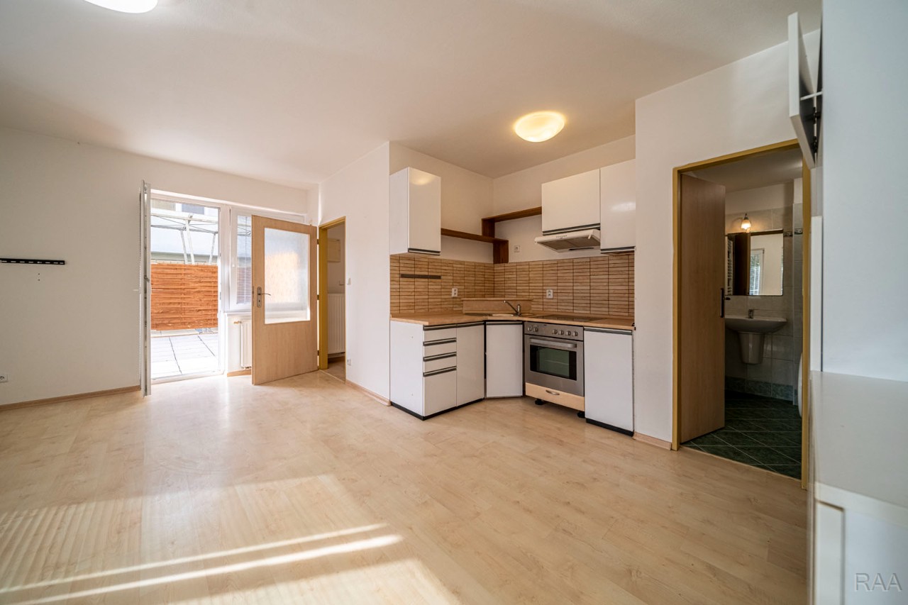 Prodej bytu 1+kk v osobním vlastnictví v lokalitě Kvítkovice, ul. Hlavní, Otrokovice. Podlahová plocha bytu činí 37,3m² + cca 24m² velká terasa (soukromá, přístupná pouze z předmětného bytu). Byt umístěn ve 2. NP (1. patro), vchodové dveře plastové, okna plastová s dvoj-skly, podlahy betonové kryté plovoucími podlahami (laminátové) a dlažba v koupelně. Vnitřní dispozice: vstupní chodba, pokoj s kuchyňským koutem a s výstupem na terasu, koupelna se sprchovým koutem, WC samostatné přístupné přes koupelnu. Vytápění bytu a ohřev teplé vody zajišťuje vlastní plynový kotel. K bytu náleží drátěná sklepní kóje umístěná na podlaží. Parkování zdarma na obecním parkovišti u domu. Měsíční platby 1869,- Kč/měsíc (vodné, stočné, správa domu, fond oprav, pojištění stavby atd.) + 1500,- Kč/měsíc zálohy na energie (plyn, elektřina). Výstavba provedena v r. 2008 - nadstavba nad stávající, původní objekt. Volné ihned. Klidná, tichá lokalita.