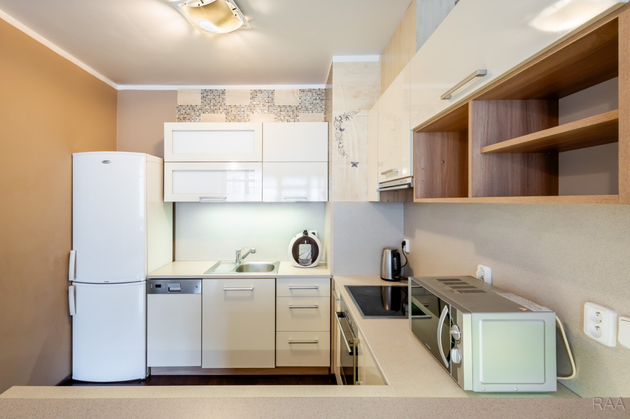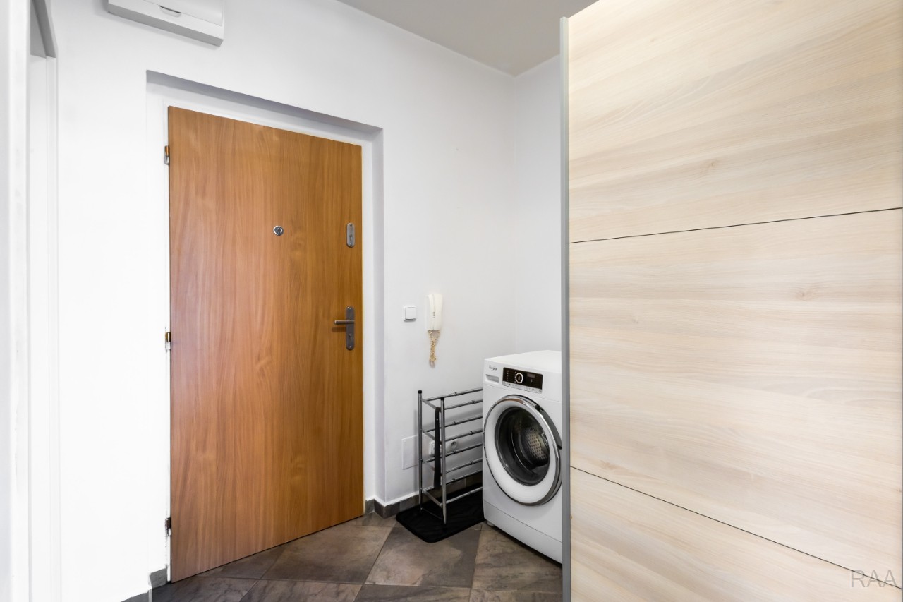 Nabízíme k pronájmu prostorný slunný byt 2+kk s balkonem a garážovým stáním v cihlovém domě v Olomouci - Řepčíně, ulice gen. Píky, s výbornou dostupností centra města. Byt má celkovou výměru 56 m² (+ balkon cca 7 m²) a nachází se ve 4. NP sedmipodlažního cihlového domu s výtahem. V bytě je velká předsíň s věšákovou stěnou a pračkou, koupelna s rohovou vanou a umyvadlem (otopný žebřík, skříňka, zrcadlo, ventilátor, místo pro pračku), samostatné WC s bidetovou sprchou a umyvadlem, útulná ložnice s vestavěnou skříní, pěkný obývací pokoj s jídelním koutem a moderní kuchyňskou linkou na míru. Kuchyň je plně vybavena elektrickými spotřebiči - el. trouba, myčka, sklokeramická varná deska, digestoř, vestavěná lednice s mrazákem, MW, kávovar, dřez). V pokoji stůl + 2 židle, skříňka. Z obývacího pokoje je vstup na balkon (stůl +2 židle, úložný box). Vytápění a ohřev vody – dálkové. Samostatné měřiče energií (teplá voda, studená voda, teplo, el). Podlahové vytápění v obývacím pokoji. Na podlaze plovoucí podlaha, v koupelně, WC a předsíni dlažba. Plastová okna, žaluzie, osvětlení, přípojka internet(optika), společná anténa. Veškerá občanská vybavenost v dosahu, v blízkosti zastávka MHD (5 min), MŠ, ZŠ, lékaři, obchody, restaurace, kavárny. Velmi klidná lokalita, ale zároveň blízko do centra města. Byt je volný od 20.10.2025. Nájemné za byt 16 900 Kč + zálohy na energie a služby 5350 Kč. K bytu patří garážové stání v suterénu domu, které je možné v případě zájmu pronajmout k bytu za 2500 Kč/měsíc. Je možné využívat společnou kolárnu. Provize RK ve výši 1měsíčního nájmu. Vhodné pro 1-3 osoby, majitel upřednostňuje nájemce bez domácích mazlíčků, bez zatížení exekucí či insolvencí. Dlouhodobý pronájem možný. PENB B. Veškeré uvedené údaje jsou pouze informativní, kompletní informace o stavu nemovitosti obdržíte u makléře.